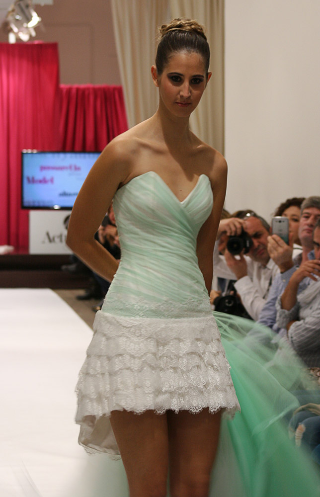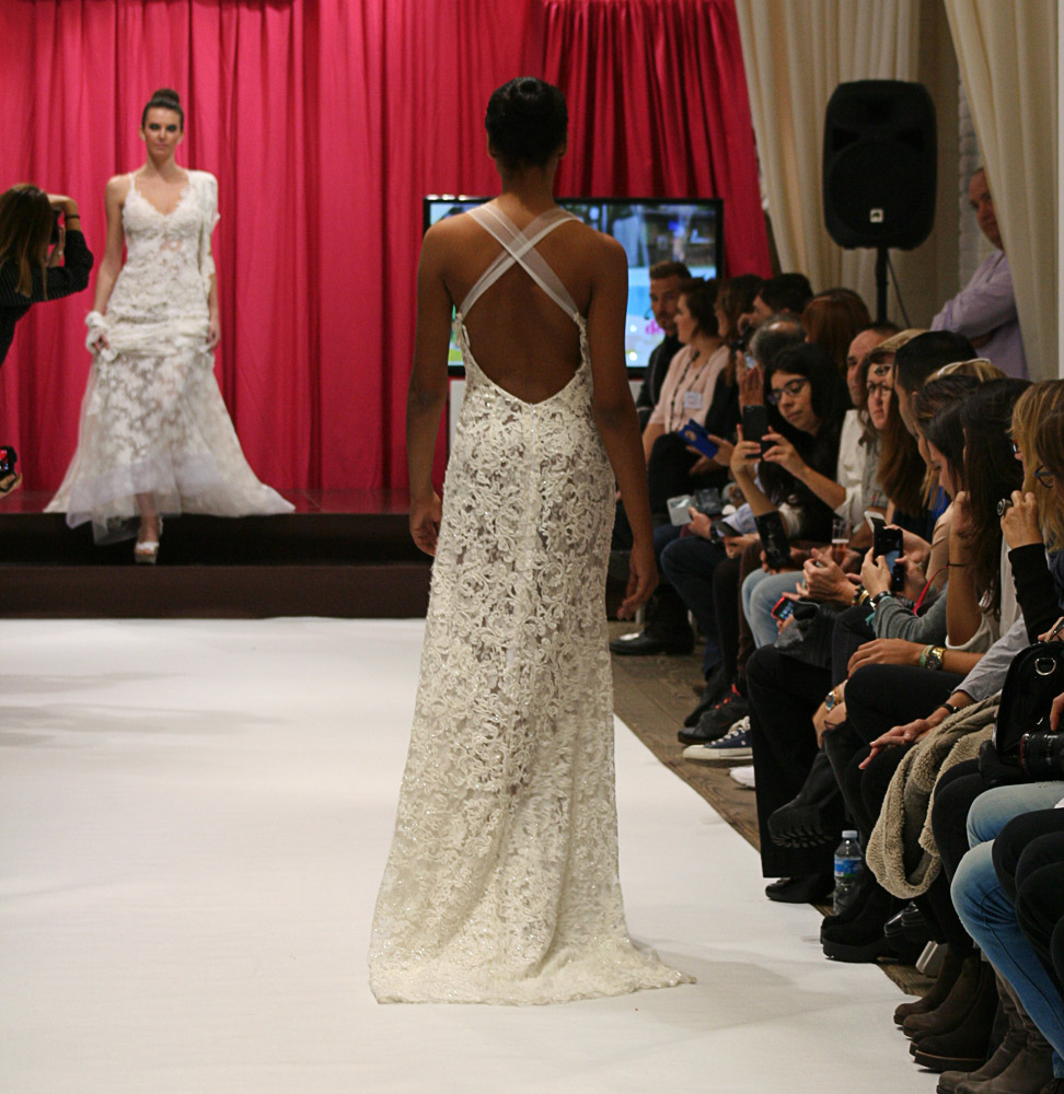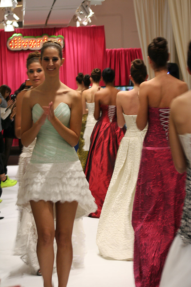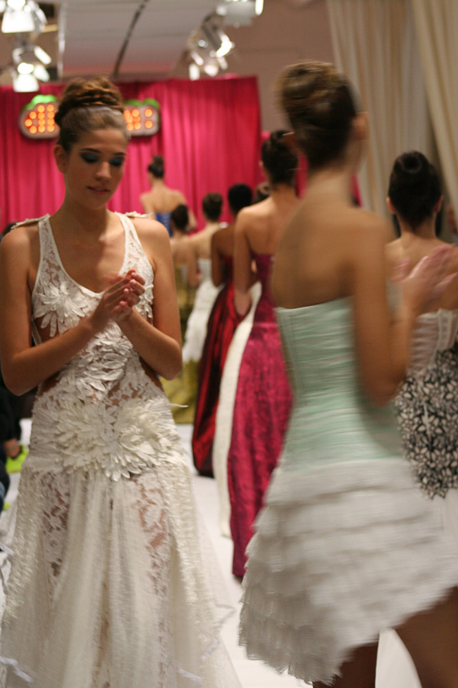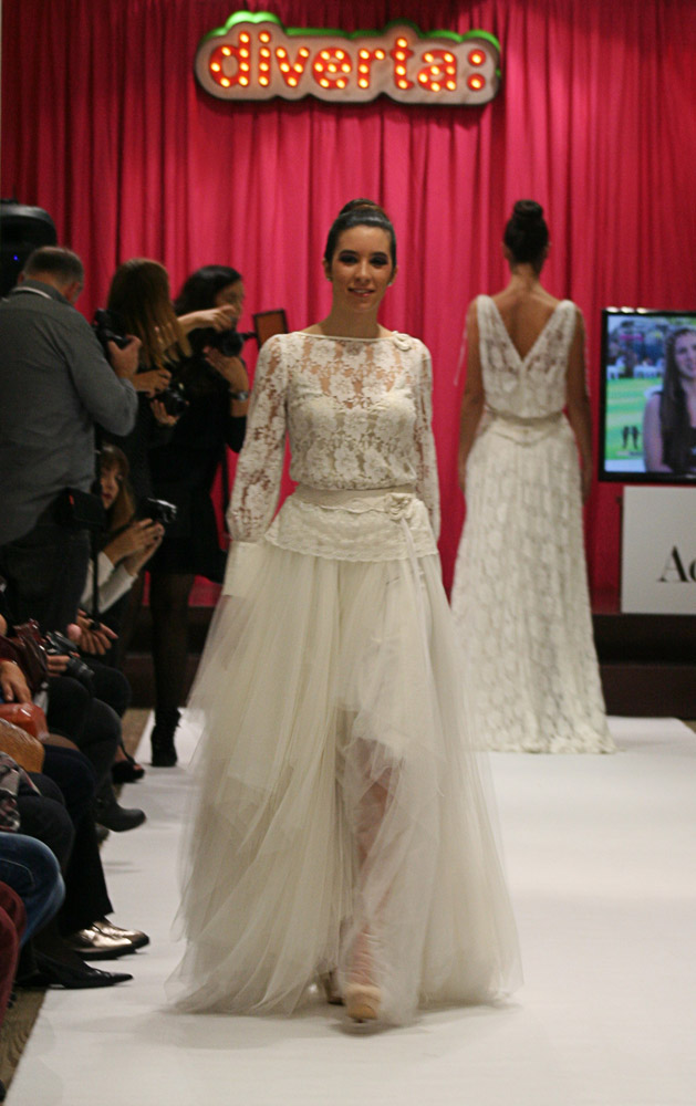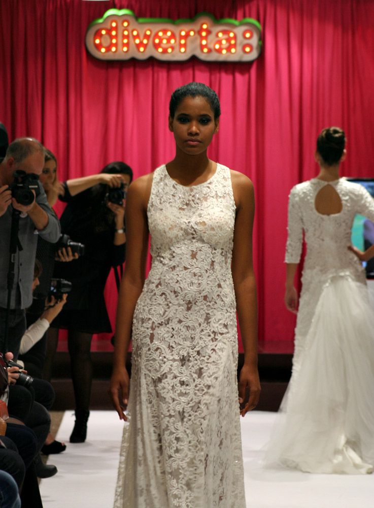 Jordi Dalmau and Eva Prat, manager of Diverta Group, held the show. Actually, it was a model contest. The purpose was to select the “DONA D“, a model that would represent the wedding Dress Diverta designed by Jordi Dalmau in the Pasarela Gaudi, one of the biggest Bride Shows in Spain. The 10 models we see in the pictures were the finalists of a previous edition. Can you imagine how exited the girls were!