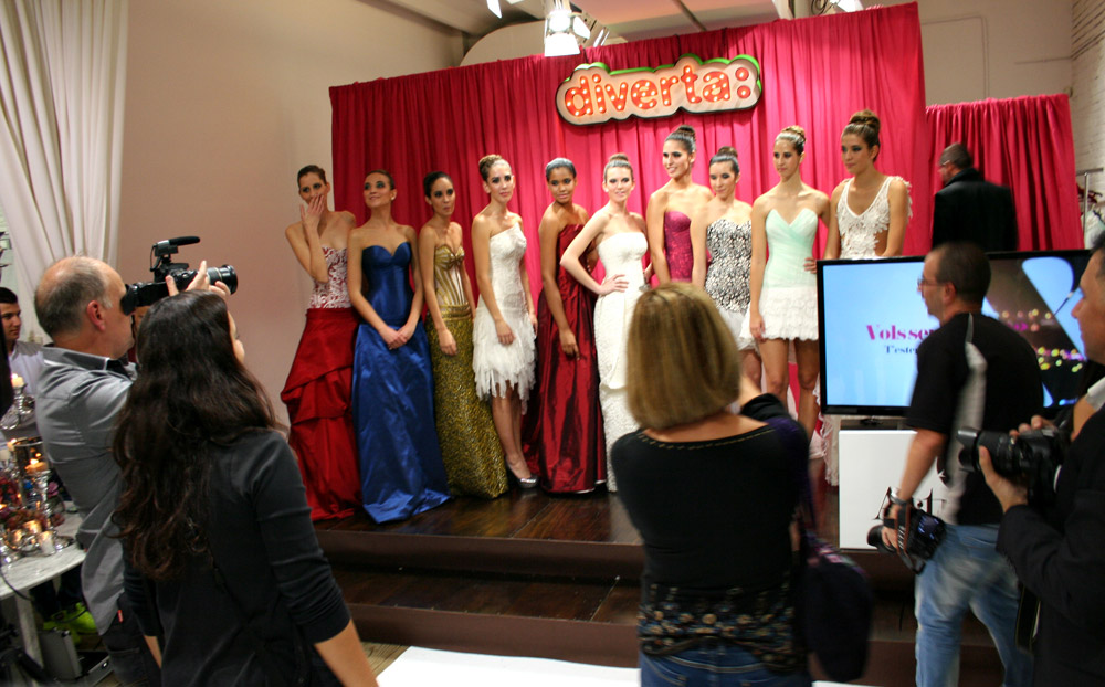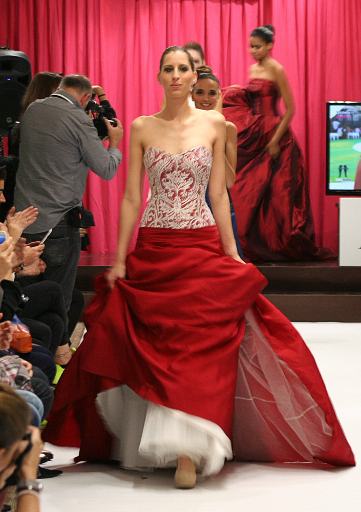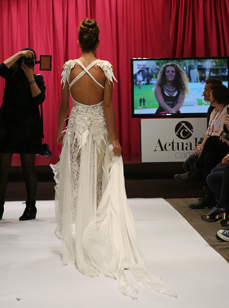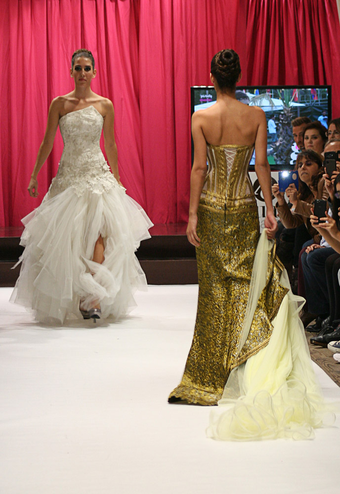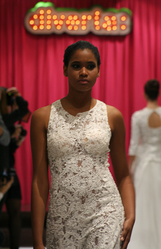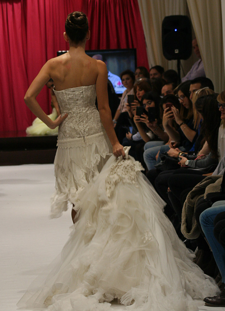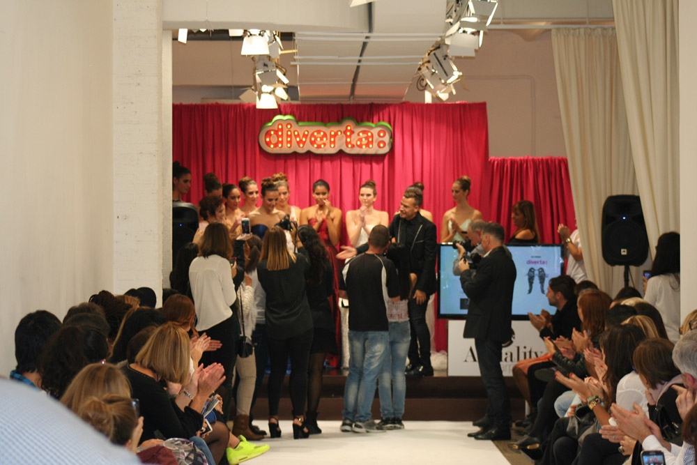 Jordi Dalmau and Eva Prat, manager of Diverta Group, held the show. Actually, it was a model contest. The purpose was to select the “DONA D“, a model that would represent the wedding Dress Diverta designed by Jordi Dalmau in the Pasarela Gaudi, one of the biggest Bride Shows in Spain. The 10 models we see in the pictures were the finalists of a previous edition. Can you imagine how exited the girls were!