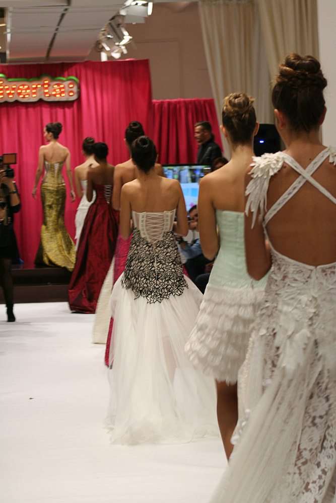 El espectáculo estuvo organizado por Jordi Dalmau y Eva Prat, manager del Grupo Diverta. Para ser más exacta se trataba de un concurso de modelos. El propósito era seleccionar a la DONA D, quien representará el vestido Diverta, diseñado por Jordi Dalmau, en la Pasarela Gaudí, una de las Fashion Week de Novias más importante de España. Las diez modelos de la fotos, son las finalistas de un evento anterior. ¿Te puedes imaginar lo emocionadas que estaban?